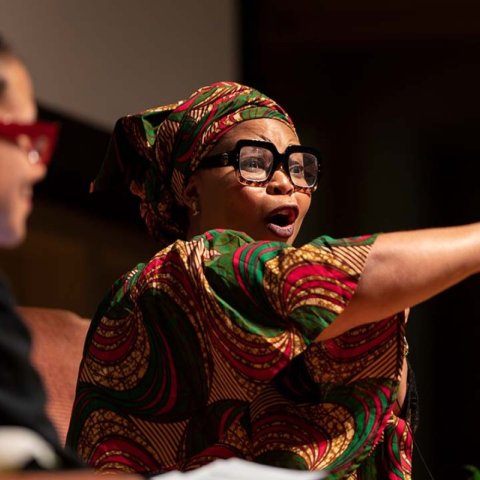 In her talk, “Forging Lasting Peace: Movements for Justice in a Pluralist World,” Gbowee wove personal stories with what she sees as the tenets, the requirements, of successful peace-building movements – movements that not only end conflict but ensure dignity for all citizens.
