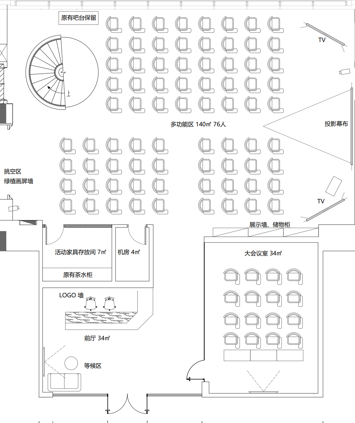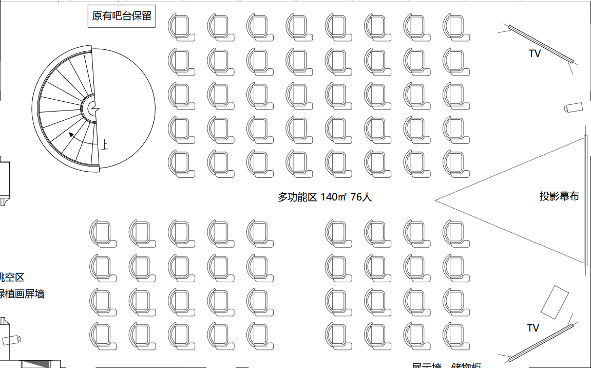 • Multi-function Area (1,507 sqft / 140 sqm): theater set-up (78 person capacity) or classroom set-up (40 person capacity)